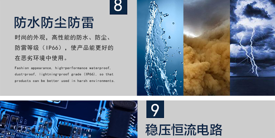 ★采用窄角聚光透鏡集中有效光源,減少發散光損失,有效減少光污染;