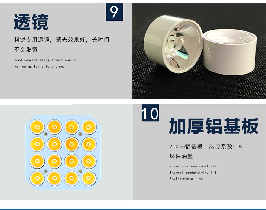 ★可選用不同角度(10?、25?、40?、60?、90?)的聚光透鏡集中有效光源,減少發散光損失,有效減少光污染;